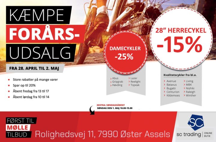 Alle varer i denne shop, der ikke er solgt den 28. april, vil blive solgt 29. og 30. marts samt 1. april til stærkt nedsatte priser.